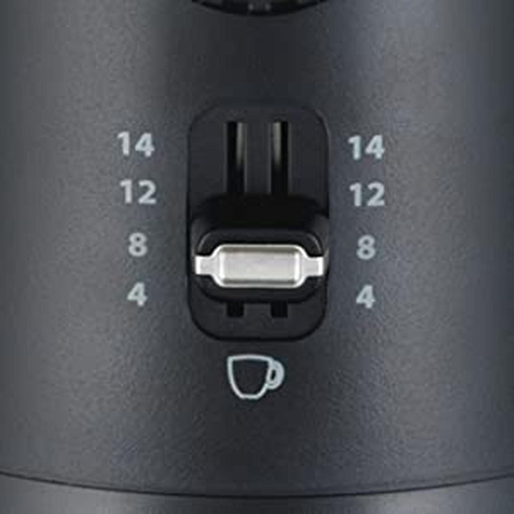 - Indicador de múltiples configuraciones de molido le permiten personalizar su café con precisión