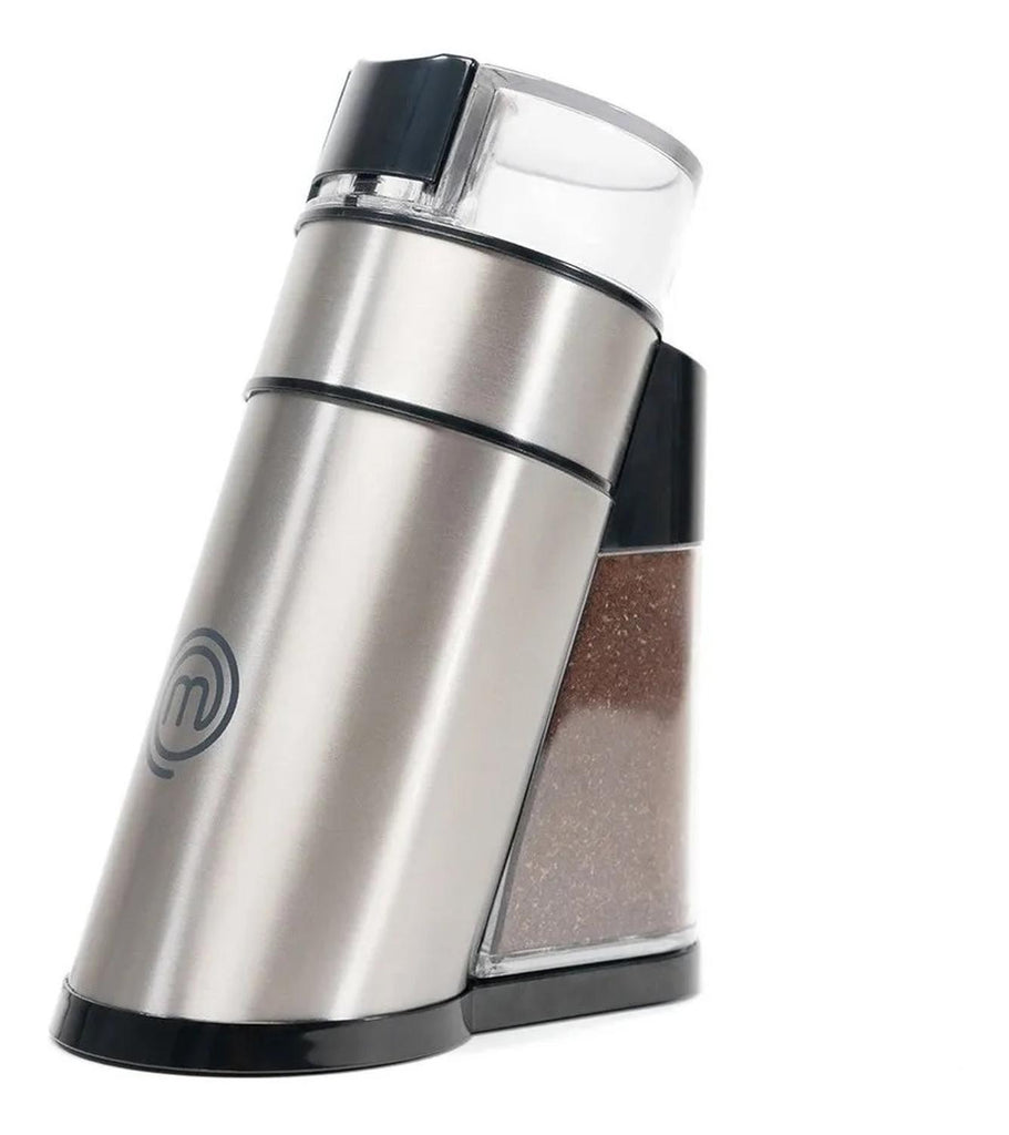 El molinillo de café MasterChef MKCG1SP ofrece cuchillas de acero inoxidable de alta durabilidad y potencia ideal para moler granos de café al instante, asegurando frescura y control sobre la textura del molido, desde fino para espresso hasta grueso para prensa francesa.