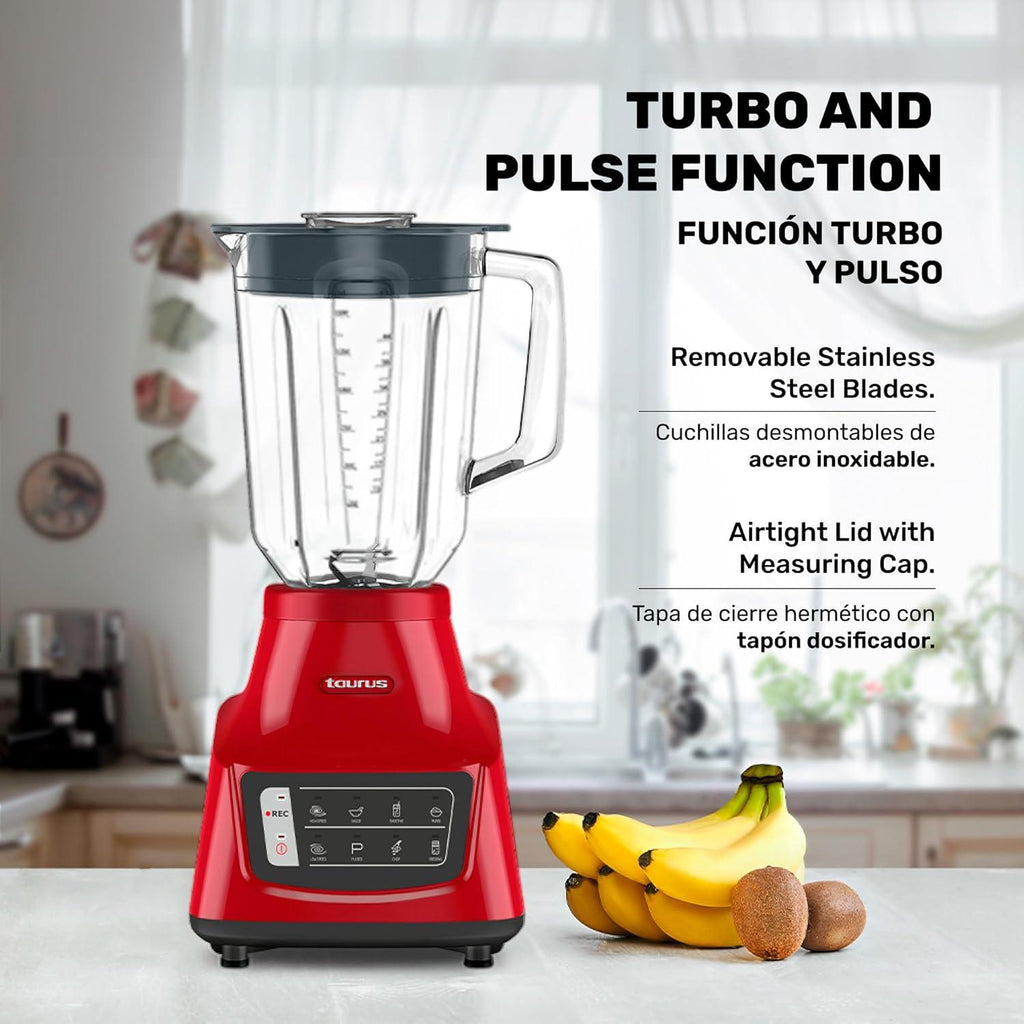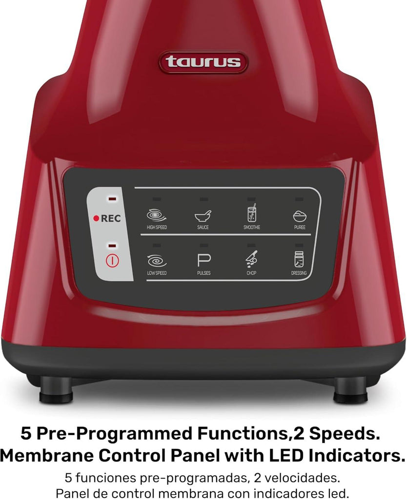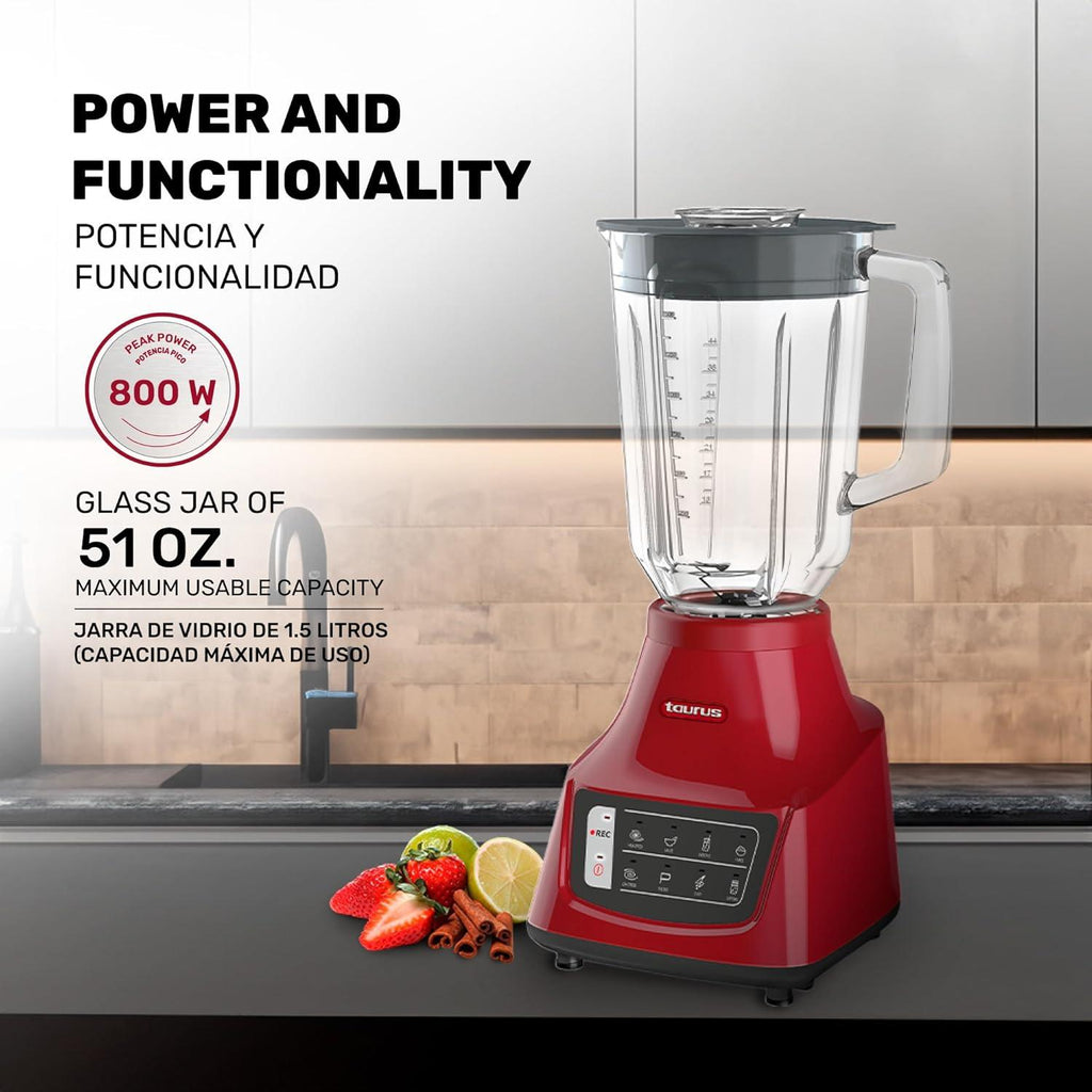 - "LICUADORA TAURUS GRANDEUR TOUCH REC VASO DE VIDRIO 1.8 LT 750W ROJA"
